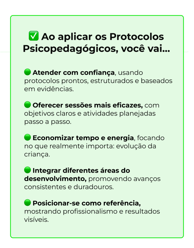 O tempo para dominar os Protocolos e aplicá-las em sessões varia de pessoa para pessoa. Alguns profissionais conseguem implementar logo após estudar as técnicas e usar os roteiros prontos, enquanto outros preferem praticar mais antes de levar para o atendimento.
